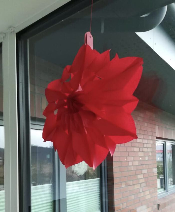 Beim lebendigen Adventskalender im Hospiz haben Dagmar und Anette mit den Gästen und Angehörigen Sterne aus Brottüten gebastelt.