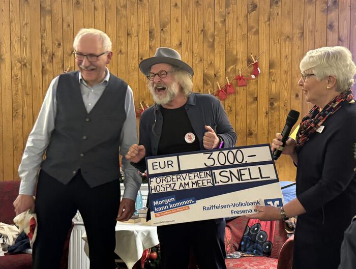 Im Rahmen des literarisch-musikalischen Krimiabends mit Klaus-Peter Wolf am 13.12.2025 im Reichshof in Norden übergaben Frau Dr. Trettin und Herr Snell Spenden an den Förderverein des Hospizes am Meer.