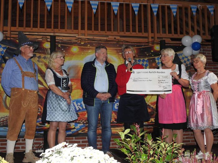 Bei der von Wilma und dem singenden Kapitän Toni gemeinsam mit seiner Frau Petra organisierten Hüttengaudi im Engerhafer Gulfhof wurde nicht nur kräftig gefeiert, sondern auch Gutes getan.